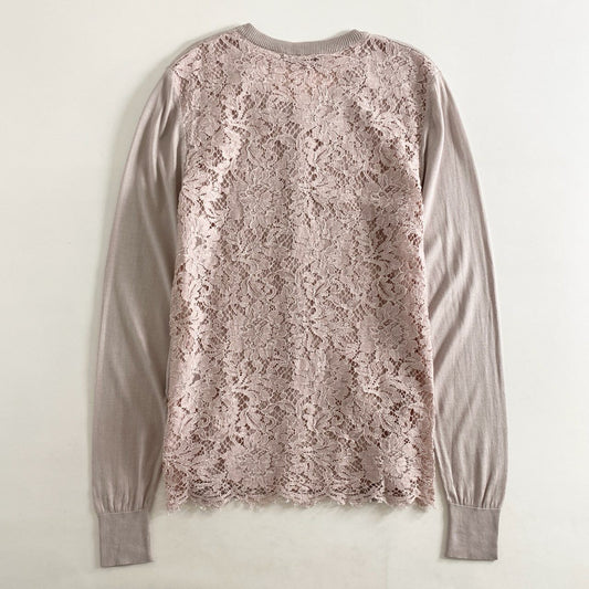 35g28 DOLCE&GABBANA ドルチェアンドガッバーナ イタリア製 レース切替 ニットカーディガン 羽織 長袖 ロングスリーブ 42 ピンク シルク コットン