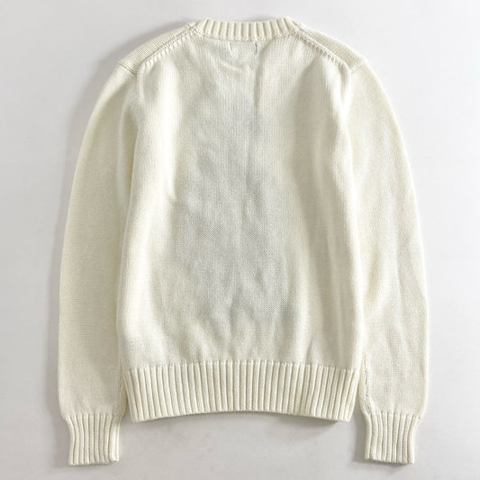 35g28 《極美品》 タグ付 POLO RALPH LAUREN ポロラルフローレン ポロベア クルーネック ニット セーター トップス フリンジ XS ホワイト クリーム系 コットン