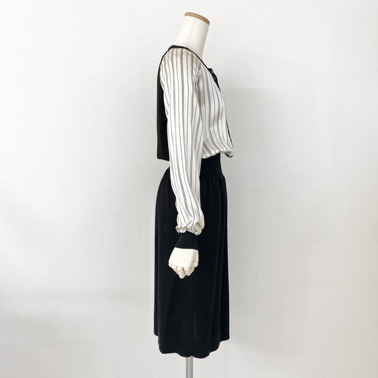 45h7 GIORGIO ARMANI ジョルジオ アルマーニ ニット切替 シルク100 長袖ニットワンピース 40 ホワイト ブラック イタリア製 ドレス