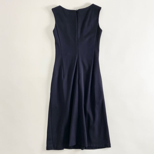 12b7-3 JIL SANDER ジルサンダー イタリア製 ノースリーブワンピース ドレス バックジップ ひざ丈 34 ネイビー レーヨン MADE IN ITALY