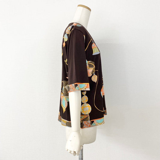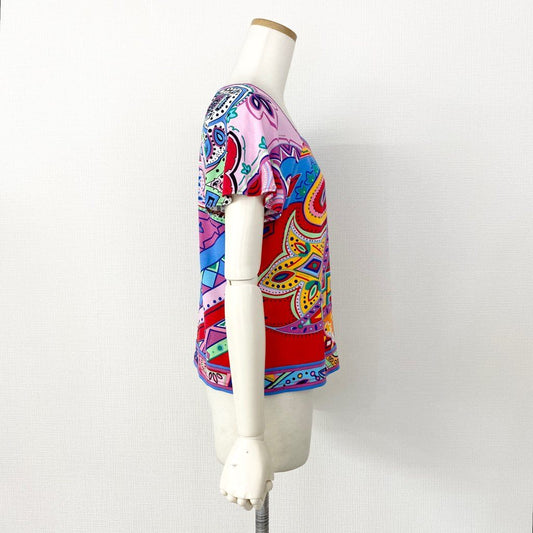 12b5-2 LEONARD レオナール 半袖Tシャツ カットソー 伸縮ストレッチ 美しい花柄プリント 40 マルチカラー レディース