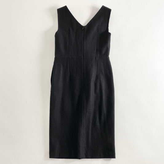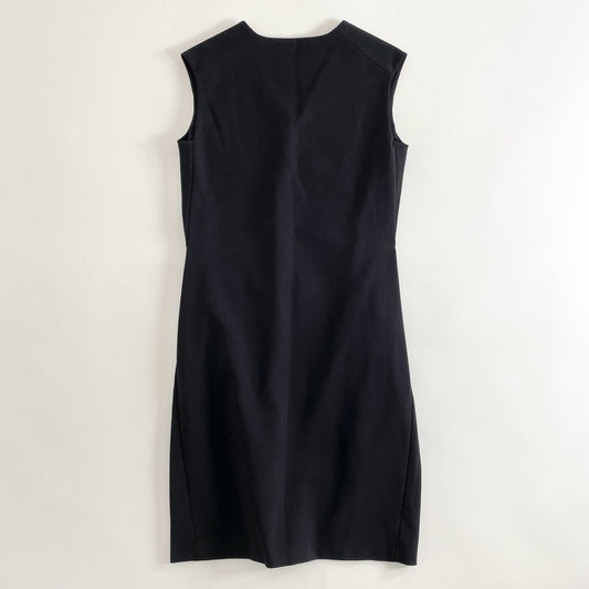 12b7-5 JIL SANDER ジルサンダー イタリア製 ノースリーブワンピース ドレス バックジップ 34 ブラック ウール MADE IN ITALY