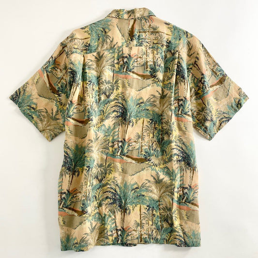 25b5 日本製 Papas パパス 半袖シャツ アロハシャツ 総柄シャツ レーヨンアロハ テロテロ素材 L マルチカラー レーヨン100% メンズ