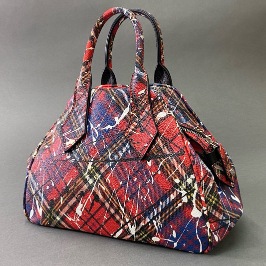 Db17 《美品》 Vivienne Westwood ヴィヴィアン ウエストウッド YASMINE ヤスミンバッグ レッド ORB オーブ ペイントチェック イタリア製 保存袋付き