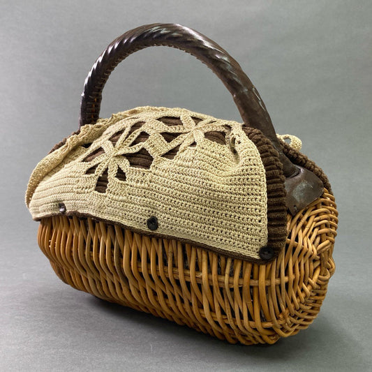 Fc6 ebagos エバゴス 08AW ナゼダイヤモンドガキニナルノダロウ かごバッグ ブラウン コンパクトミラー付き 手鏡 カバン