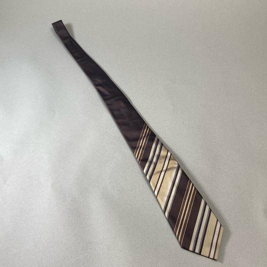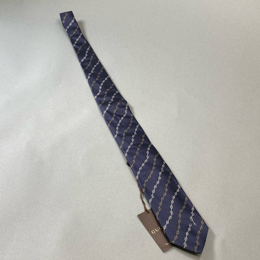 j16《美品》GUCCI グッチ ネクタイ シルク100% ストライプ フォーマル ネイビー ブラウン アイボリー メンズu02t