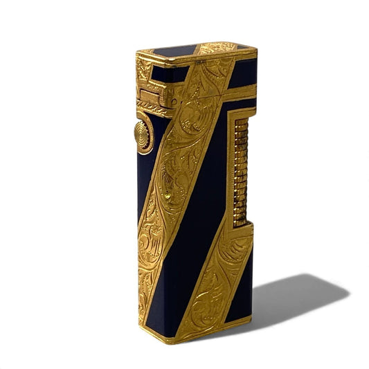Dunhill ダンヒル ROY KING ロイキング ライター 喫煙具 ローラーガスライター 装飾 火花確認 ゴールド ネイビーo07t