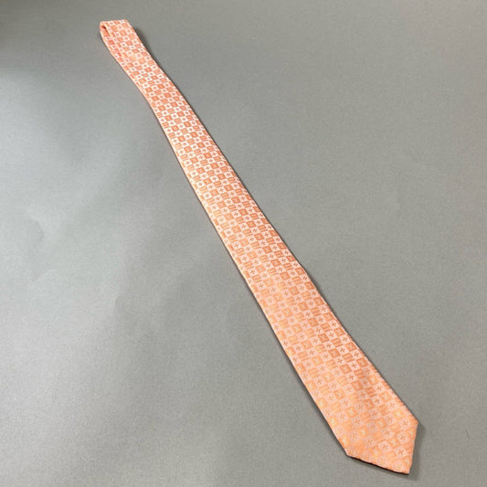 j16《極美品》LOUIS VUITTON ルイヴィトン ネクタイ シルク 絹100% フォーマル ダミエ LVロゴ ペールオレンジ メンズu02t