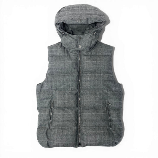 34d13 【美品】MooRER ムーレー フーディーダウンベスト ウールフランネルダウンベスト アウター 50サイズ グレー ウール100% メンズ 男性用sn1