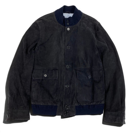 64d16 Cinquanta チンクアンタ レザージャケット ブルゾン スウェードレザー 裏地ストライプ 羊革 イタリア製 サイズ48 ネイビー ブラック メンズ 紳士服u02t