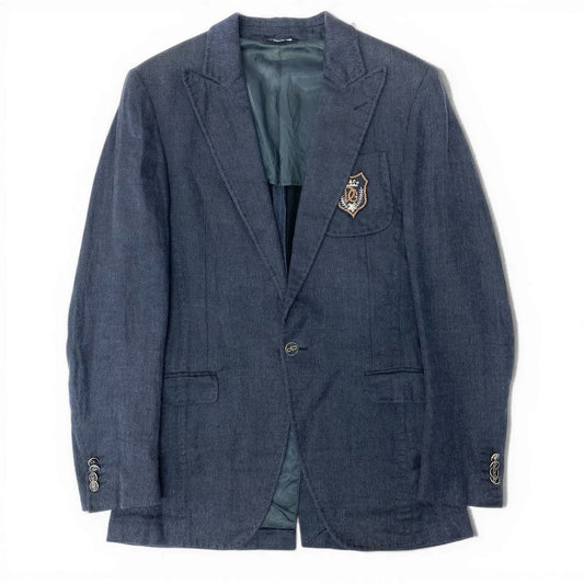 60d13 DOLCE&GABBANA ドルチェアンドガッバーナ テーラードジャケット ブレザー ロゴワッペン ロゴボタン イタリア製 44 ネイビー コットン リネン メンズo07t