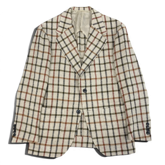 40d16 dunhill ダンヒル テーラードジャケット チェック柄 背抜き 2B ベージュ系 メンズ 紳士服u02t