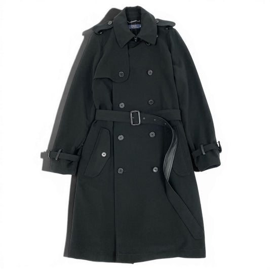 37d14 【美品】 POLO RALPH LAUREN ポロラルフローレン トレンチコート スプリングコート ロング レザーベルト サイズ12 180/104A ブラック メンズ 紳士服u02t