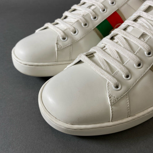 8g19 GUCCI グッチ GGマーモントロゴ シェリーライン レザースニーカー ローカットスニーカー 10 1/2 ホワイト メンズ 靴