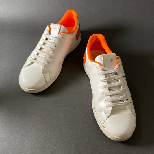 9h4 VALENTINO GARAVANI ヴァレンティノ ガラヴァーニ V Logo Sneakers ロゴスニーカー 40 ホワイト オレンジ レザー Leather シューズ イタリア製