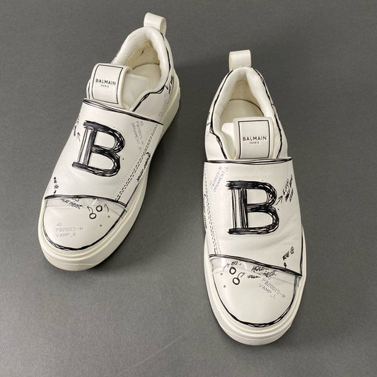 6d12 BALMAIN バルマン B Court Sketch Effect Sneaker Bコート スケッチスニーカー 25cm ホワイト レザー シューズ PB20015-M