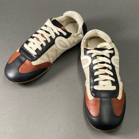 5b26 LOEWE ロエベ キャンバス × レザー バレエランナー ローカットスニーカー 40 ブラック ブラウン アイボリー シューズ