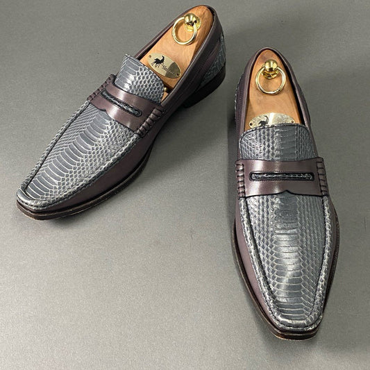 1b27 定価¥63,000 DOLCE&GABBANA ドルチェアンドガッバーナ パイソンレザー ローファー ドレスシューズ 6 1/2 スカイグレイ グレー D&G ドルガバ