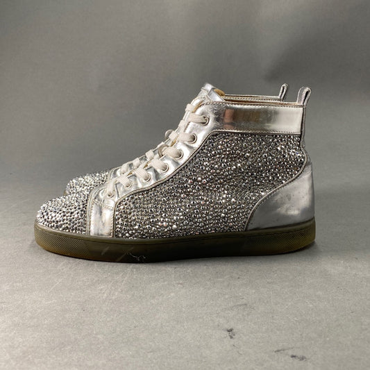 1A22 Christian Louboutin クリスティアンルブタン スワロフスキー ハイカットスニーカー カーフレザー レザースニーカー 40 シルバー メンズ シューズ