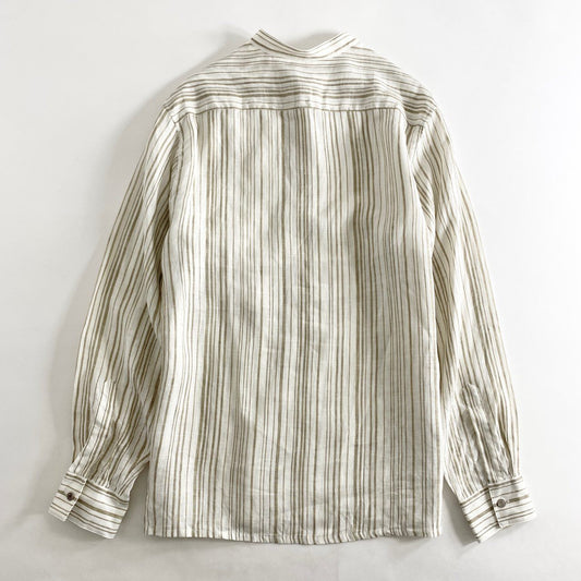40h8-2 《美品》 フランス製 HERMES エルメス バンドカラーシャツ 長袖シャツ リネンシャツ ストライプ セリエボタン サイズ41/16 ホワイト×グリーン系 リネン100% メンズ
