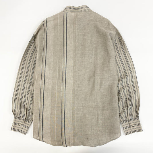 84i10 イタリア製 GIANFRANCO FERRE ジャンフランコフェレ リネンシャツ パターンストライプ 長袖シャツ サイズ42 アイボリー リネン 90s~00s old vintageu02t