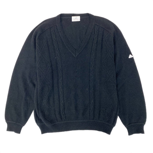 77L8 dunhill ダンヒル Ⅴネック ケーブル編み ニット セーター トップス 4 胸囲100~108 ブラック カシミヤ100 メンズ 紳士服u02t