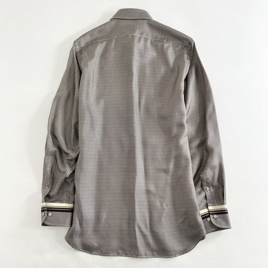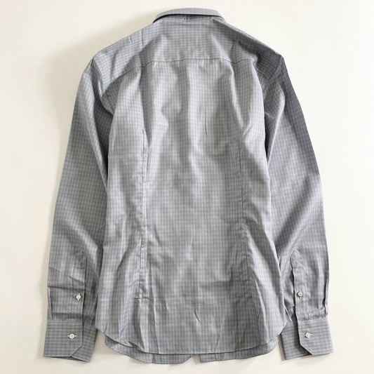 54A16 《極美品》 タグ付 イタリア製 Brioni ブリオーニ 長袖シャツ ドレスシャツ チェック柄 41 グレー ブルー クラシックシャツ CLASSIC SHIRT シェルボタン ロングスリーブ 春