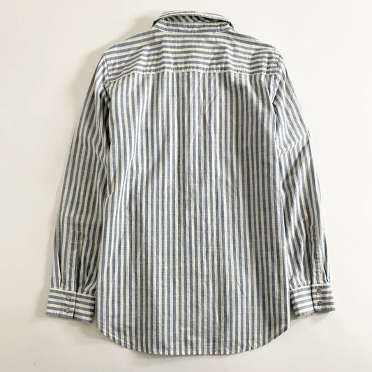 53a17 KARL LAGERFELD カールラガーフェルド ロングスリーブシャツ 長袖シャツ ストライプ S ブルー コットン ワッペン スナップボタン