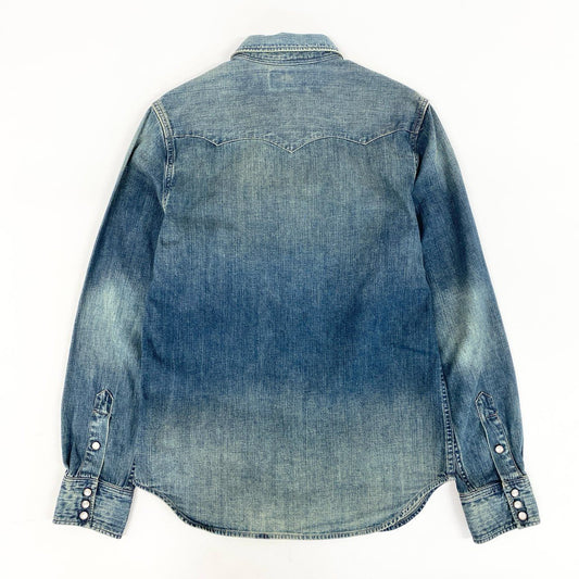 55h28 《美品》RALPH LAUREN RRL ラルフローレン ダブルアールエル 長袖シャツ デニムシャツ ウエスタンシャツ ロングスリーブ Sサイズ インディゴ メンズ 男性用k02i