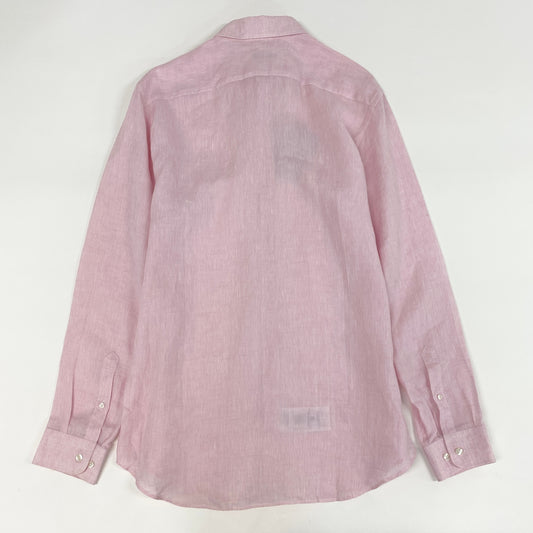 30h29 《極美品》ETRO エトロ 長袖シャツ リネンシャツ ロングスリーブ ボタンダウン 胸元ロゴ刺繍 42サイズ ピンク メンズ 男性用u02t