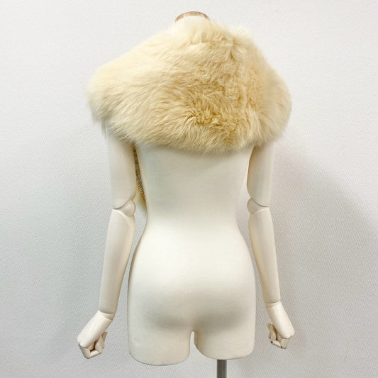 50j23 最高級毛皮 フォックスファー 毛皮マフラー 大判ティペット ボリューム◎ アイボリー フォックス レディース 本毛皮u02t