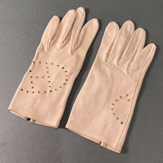 a30 HERMES エルメス Hロゴ レザーグローブ 手袋 6 1/2 ピンク レザー アームカバー フランス製 本革