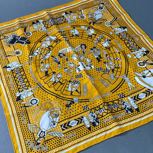 A25 フランス製 HERMES エルメス カレ55 LES GAZELLES スカーフ バンダナ イエロー シルク 小物