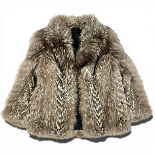 18a16 シルバーフォックス ファーコート サイズ9 茶系 本毛皮 Silver Fox Fur Coat ポケット有t18r
