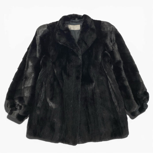 45a15 SAGA MINK サガミンク 銀サガ 横段 ダークミンクコート サイズ7 ブラック 最高級本毛皮 Mink Fur Coatt18r