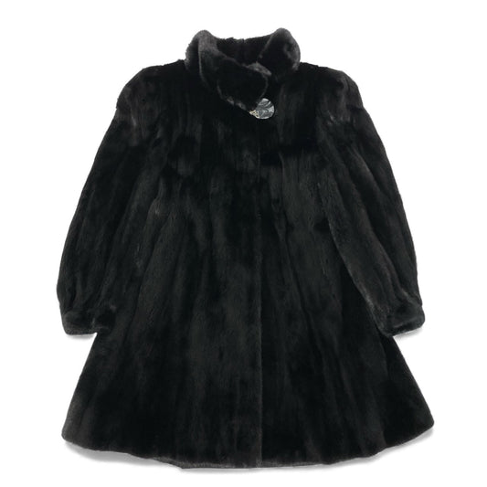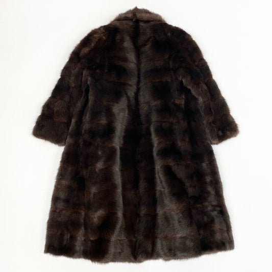53k10《美品》 SAGA MINK サガミンク デミバフミンク セミロングコート 袖螺旋デザイン M相当 11 ブラウン 本毛皮 MINK FUR COAT 裏地刺繍 リアルファーt18r