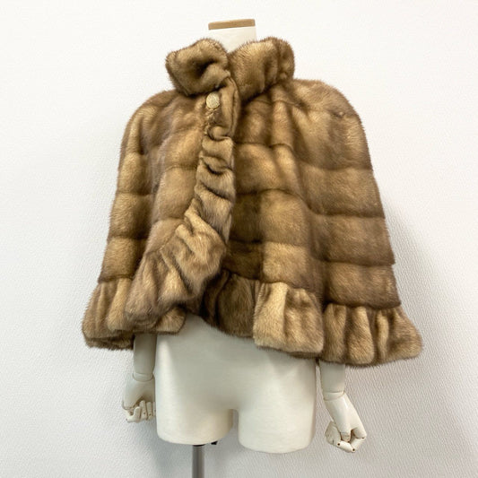 53k10《希少》 CRESCE ミンクファー フリルデザイン ケープ F 最高級本毛皮 金ボタン ポンチョ MINK FUR コートt18r