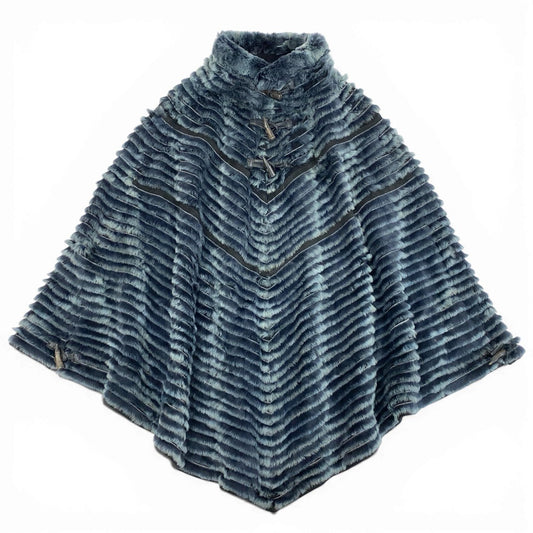 10a13 ポンチョ ヴィーゼル 本毛皮 トグルボタン レディース 女性用 Free ブルーグリーン系u02t
