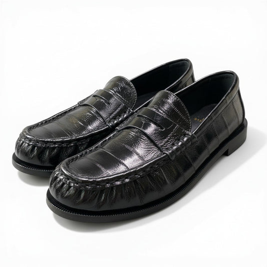 【未使用品】SAINT LAURENT サンローラン パリ LOU Loafers ル ローファー サイズ36 ブラック イールスキン レディース 革靴k02i
