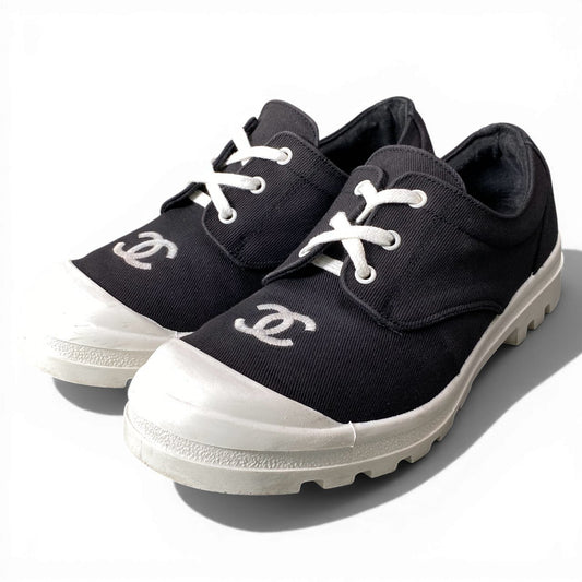 d9 CHANEL シャネル ココマーク ヴィンテージ スニーカー サイズ38 ブラック キャンバス レディースk02i