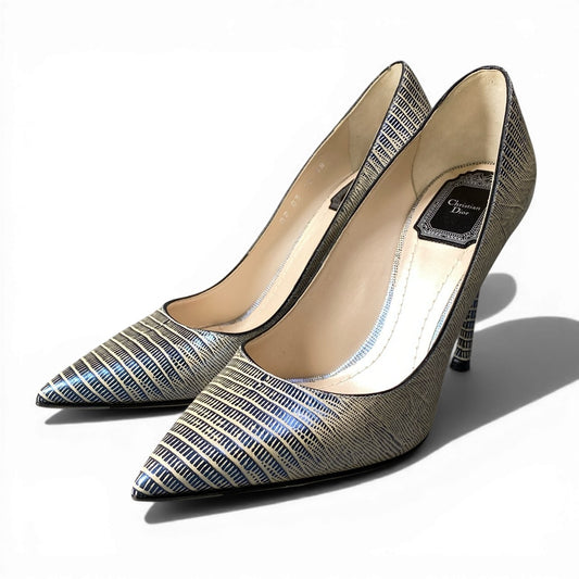 d9 Christian Dior クリスチャンディオール パンプス ポインテッドトゥ サイズ38 パイソン型押しレザー レディースk02i