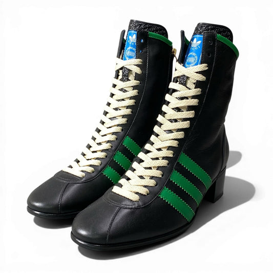 d9 GUCCI × Adidas グッチ アディダス ボーリングシューズ レザーブーツ サイドジップ トレフォイルロゴ サイズ6 1/2 ブラック レディースk02i