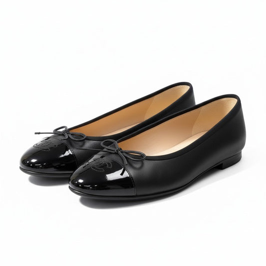 CHANEL シャネル G02819 ココマーク パテント切替 バレエシューズ フラットシューズ サイズ38C ブラック パンプス レディースk02i