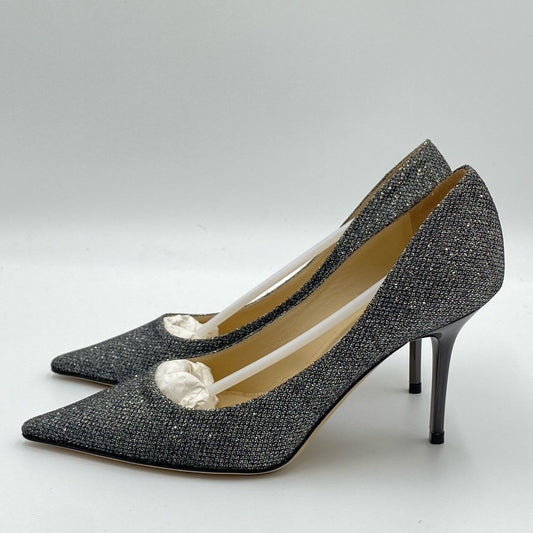 5h29《極美品》定価¥75.900 JIMMY CHOO ジミーチュウ AGNES アニエス グリッター パンプス 34 1/2 シルバー ラメ 結婚式 パーティ セレモニー 箱 保存袋t18r