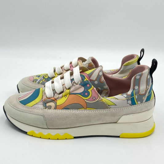 2i3 HERMES エルメス スエード切替 プリントスニーカー 35 1/2 ホワイトグレー イタリア製 女性靴t18r