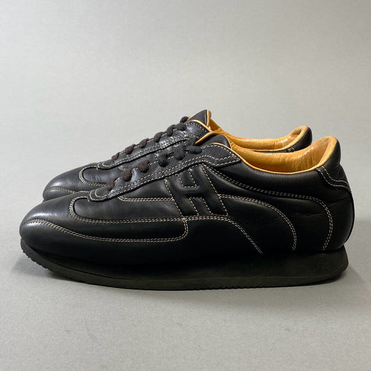 1h15 HERMES エルメス クイック レザーローカットスニーカー 38 ブラック Leather Hロゴ シューズ 女性靴t18r