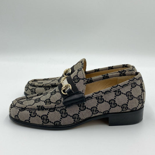 5h29 《美品》 GUCCI グッチ ホースビット GGシグネチャー ローファー 35 1/2 ブラック グレー シューズ 箱 保存袋付属t18r
