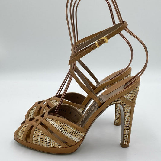 1h7《美品》Salvatore Ferragamo サルヴァトーレフェラガモ ヒールサンダル シューズ ストラップ 編み込み 6 ベージュ レディースt18r