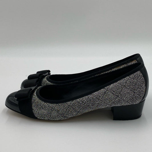 1h7 Salvatore Ferragamo サルヴァトーレ フェラガモ VARA Q ヴァラリボン ラメ エナメルパンプス 6D シルバー グリッター シューズ 箱付きt18r