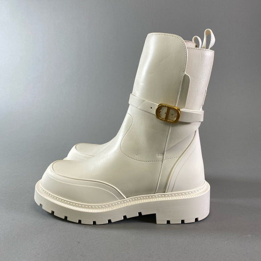 1h9《未使用品》 Christian Dior クリスチャンディオール 23SS EMPREINTE CD金具ベルト ブーツ 37 1/2 ホワイト レザー イタリア製 シューズt18r